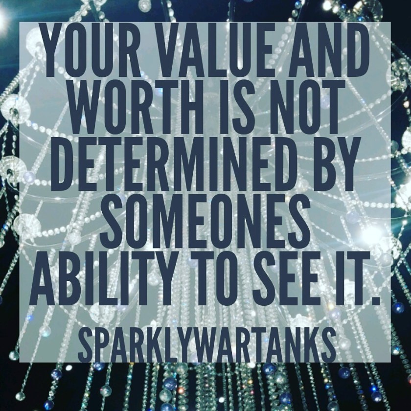 Posted in Keep Moving: Motivation and Inspiration, Quotes You have Intrinsic Value and Worth Posted on September 6, 2016September 6, 2016 by SparklyWarTanks Your value and worth is immeasurable and cannot be determined or judged by someone elses actions or thoughts. Share this: Click to share on X (Opens in new window) X Click to share on Facebook (Opens in new window) Facebook Like Loading... Author: SparklyWarTanks View All Posts