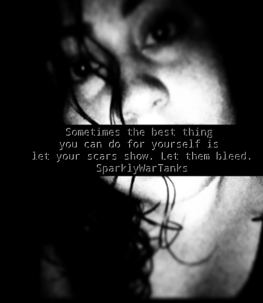 Its okay to let your scars show sometimes, maybe the person your showing them to will help you deal with them. Don’t repress those feelings anymore. Work with yourself. One push. One phrase from the right person or even yourself can help the process of healing. Things may not seem important but they are, you are important and so are you moving on. Don’t trap yourself. Don’t drive yourself crazy. Let something change. Let someone, something, a moment, a thought, a feeling change how you perceive who you are. Realize yourself. Be happy. You deserve to be happy.