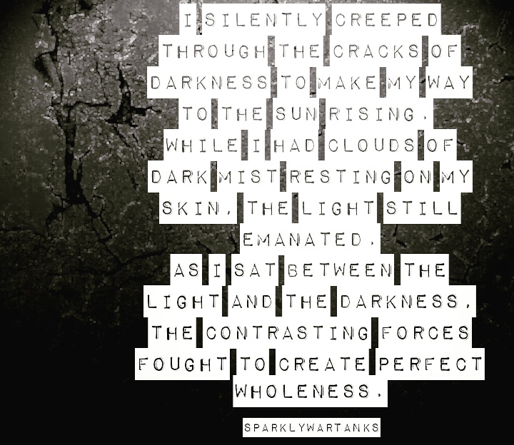 I saw myself change in a matter of a year. The transformation drastic. I can recognize who I am now, when before it was blurry. With the change came progress and opportunities. With opportunities came decisions. As I sit between my past and my future, I can’t help to see the beauty in the collision between the darkness and the light. I still have what I was in me, but as I grow farther from it, I see the lesson, and that lesson is the mist. The light is waiting to take over the rest.