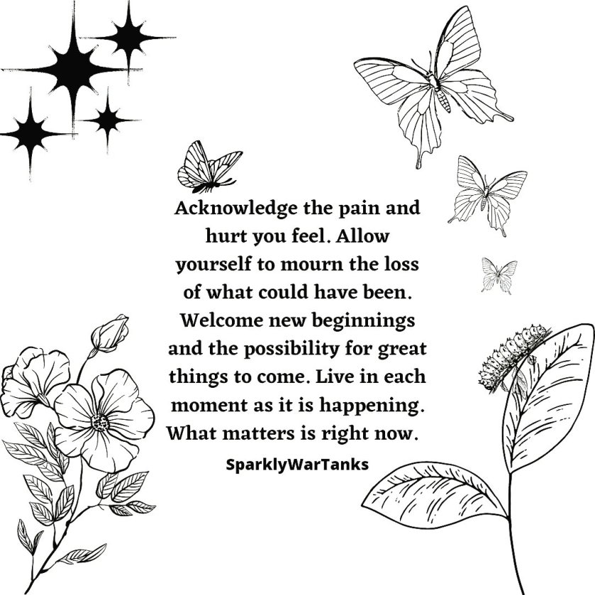 Mindfully moving forward while acknowledging the hurt and pain of “what ifs” can be challenging. As we often craft and create what we want our lives to look like, mapping out timelines, we forget to live in what is happening now. Bask in the present and realize the peace we can acquire as we move with each moment as it is given to us. What happens next will soon be our present just as quick as the prior moment became our past. Do the best you can right now and let the next moment happen when the time comes. Welcome something new. Let go of what already happened, step into right now with bravery and grace.