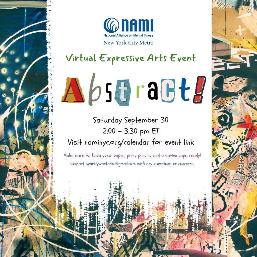 So very excited to announce the NAMI-NYC Expressive Arts workshop event I will be facilitating tomorrow! This event will be via Zoom and on the NAMI-NYC website. You can find the link here. Click the Expressive Arts Zoom link for September 30, 2023.