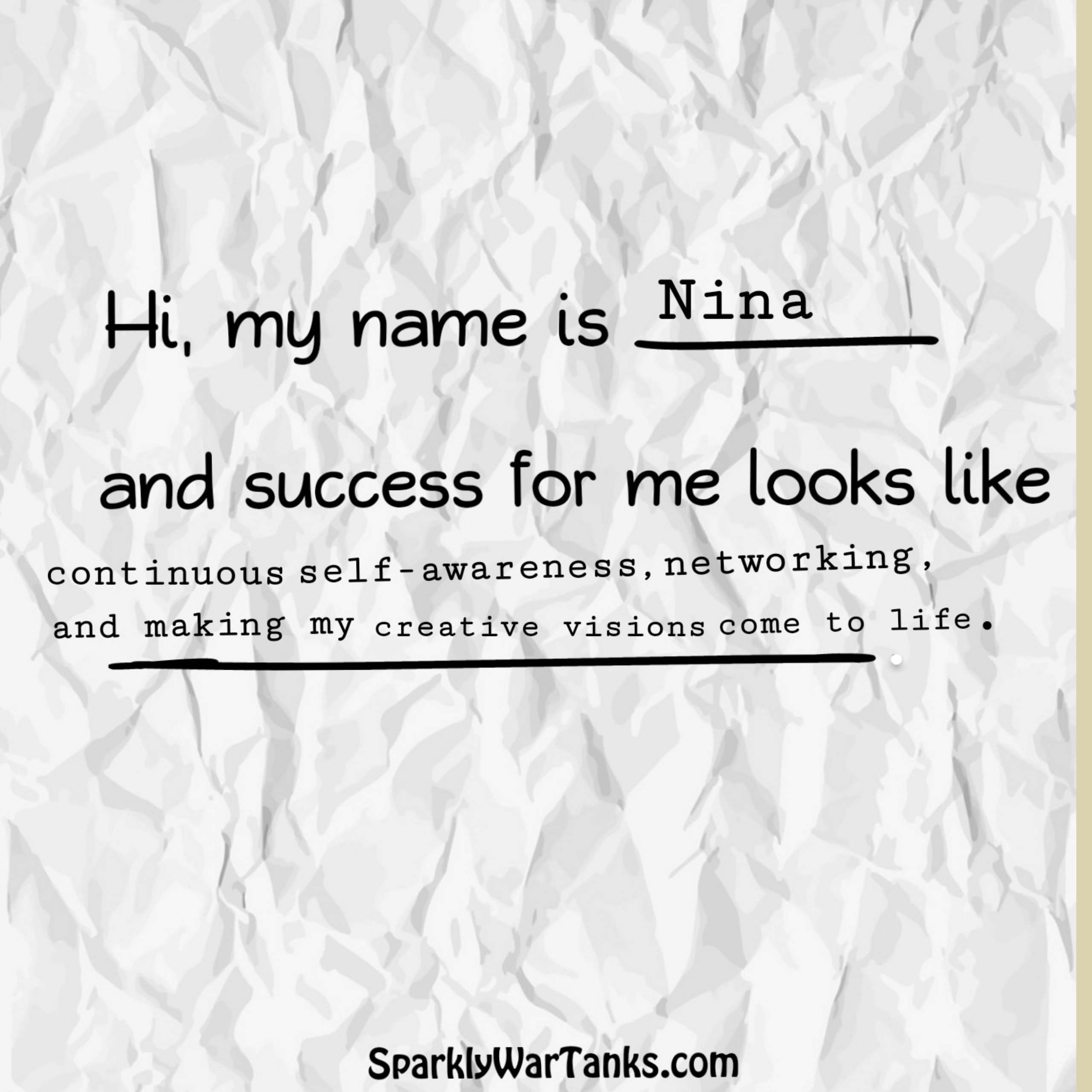 When I think of success, I think of who I want to be, and what I want to become. Being able to network, open up, and communicate with others is an important aspect of my vision of success. In order to get my creative vision flourishing, speaking with others and gaining different types of resources is important.
