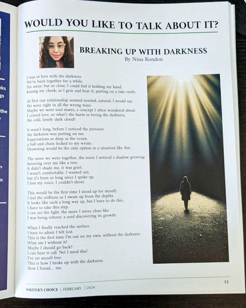 Excited to share my poem that was published in the Spotlight on Recovery magazine “Writer’s Choice” Part 7.