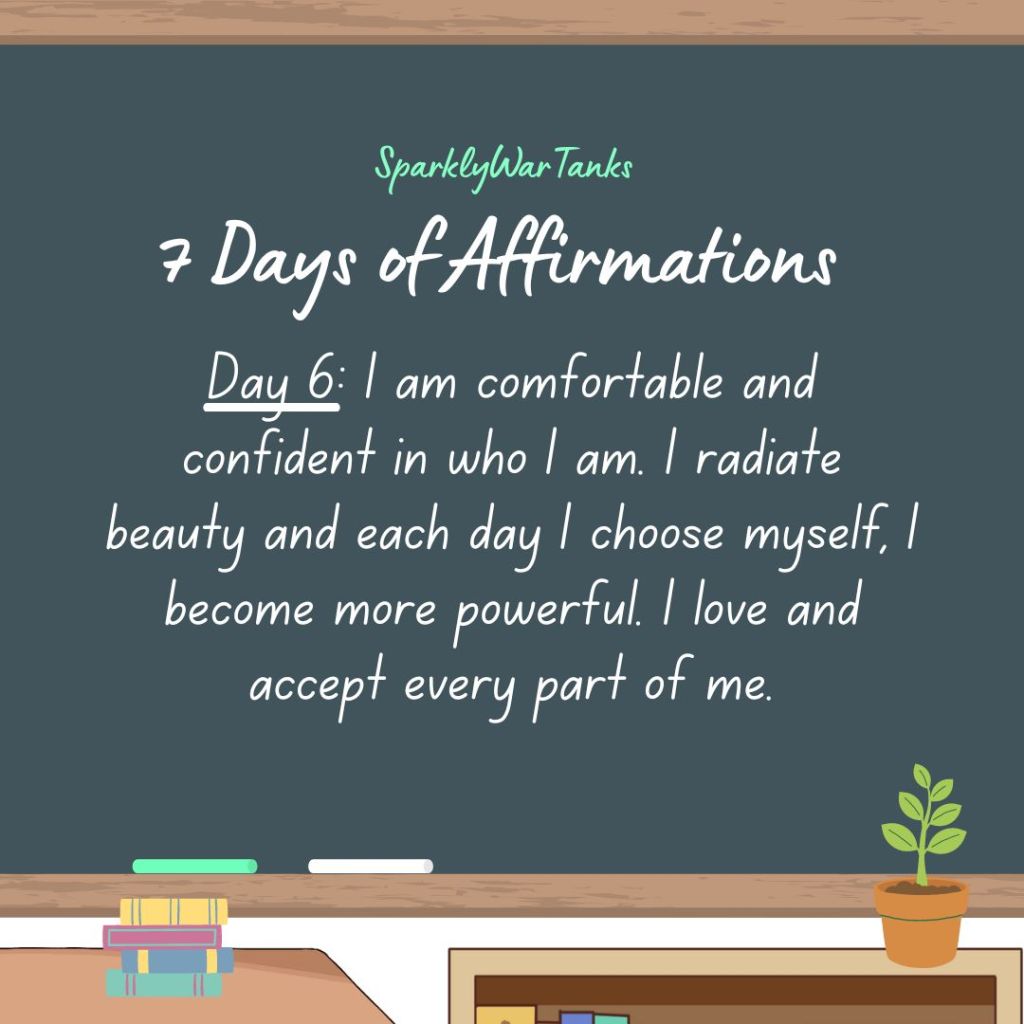 I am comfortable and confident in who I am. I radiate beauty and each day I choose myself, I become more powerful. I love and accept every part of me.