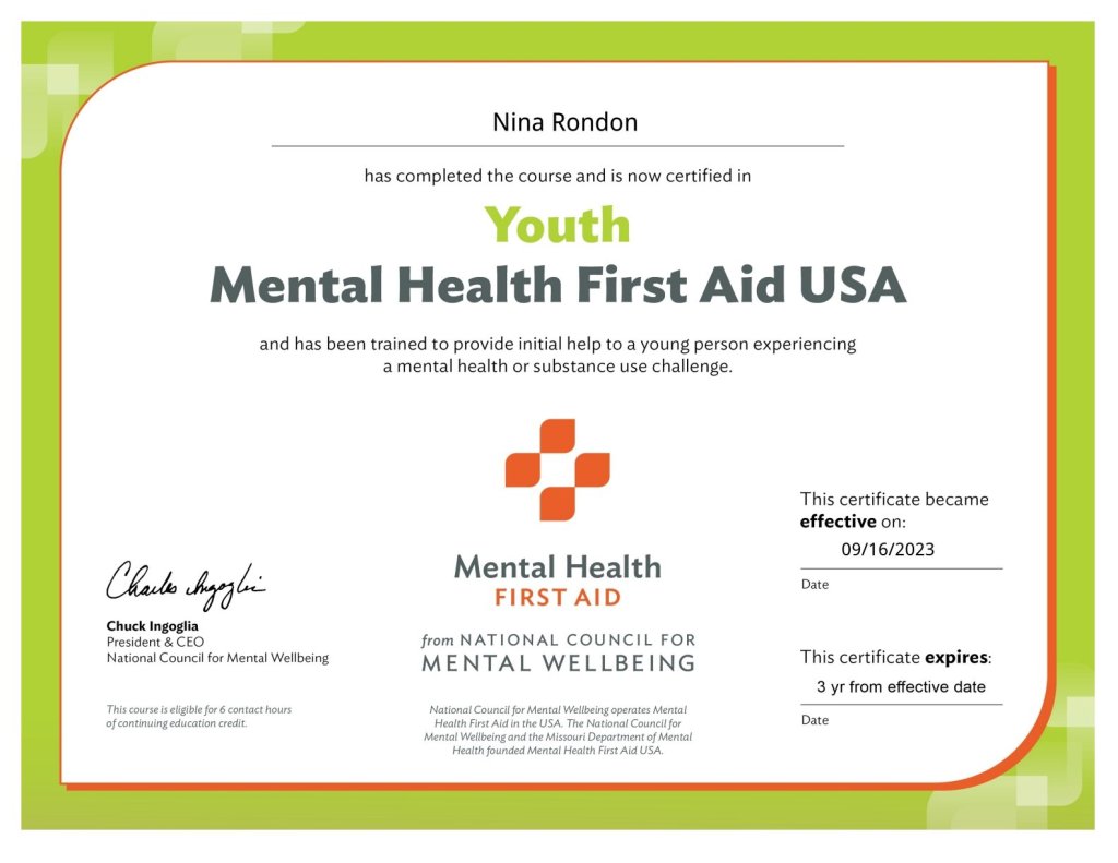 My Latest Accomplishment: I’m Certified in Youth Mental Health First Aid!