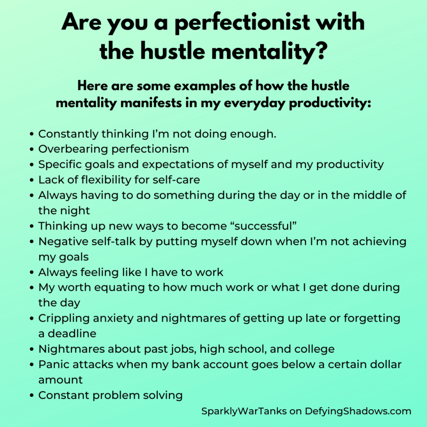 “The hustle mentality for me is driven by a desire for financial freedom and emotional wellness. The flaws in my hustle mentality, however, are rooted in “destination addiction” constantly feeling as though satisfaction is achieved in something I don’t have yet. Because I’m always working for something greater and better than my last accomplishment, I also find myself lost in perfectionism.”