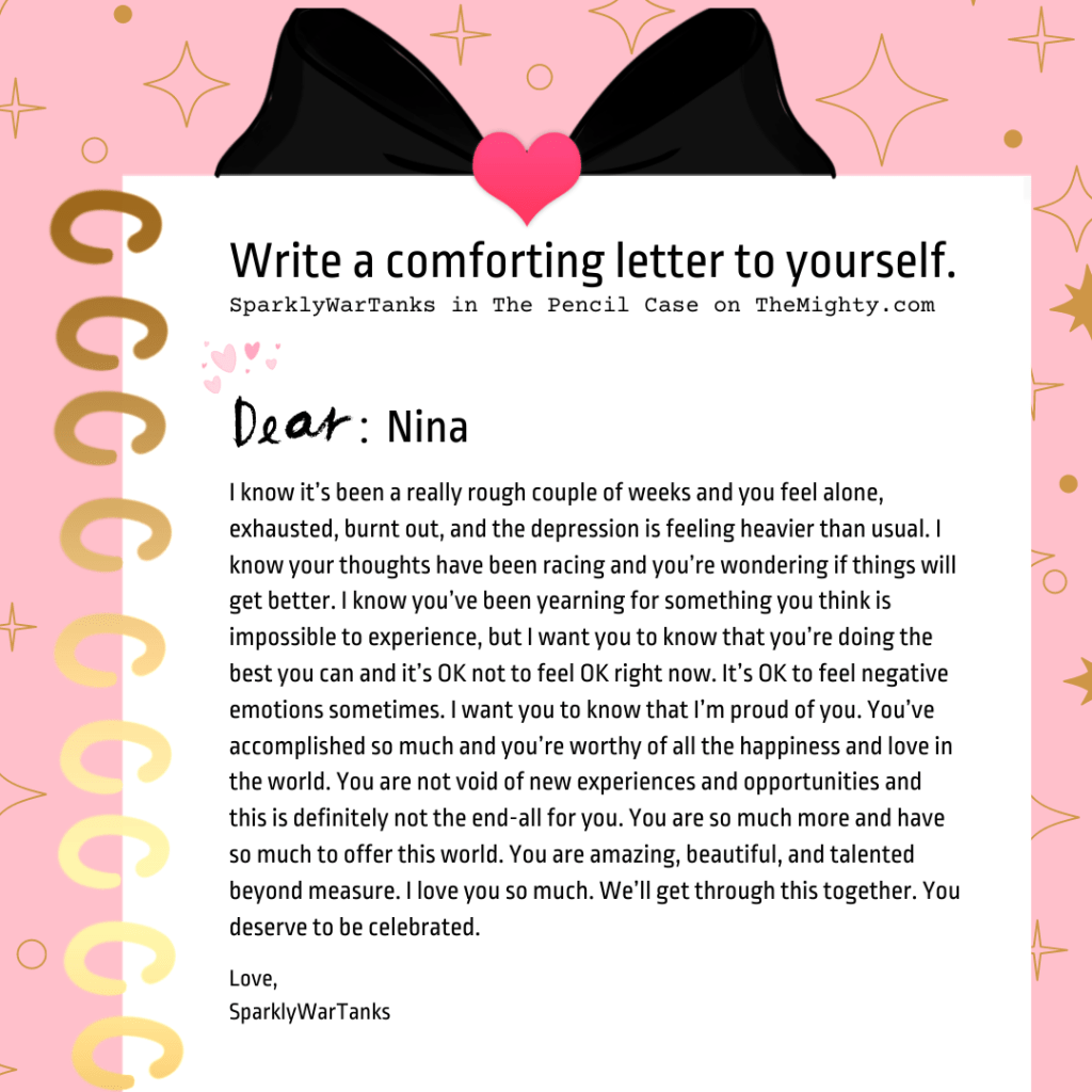 Something I find helpful for understanding the shame and grief I carry is writing messages, notes, and letters to my younger self — whether that’s my inner child or my inner teen. These are parts of me that endured so much and didn’t know how to cope with those intense experiences at the time.