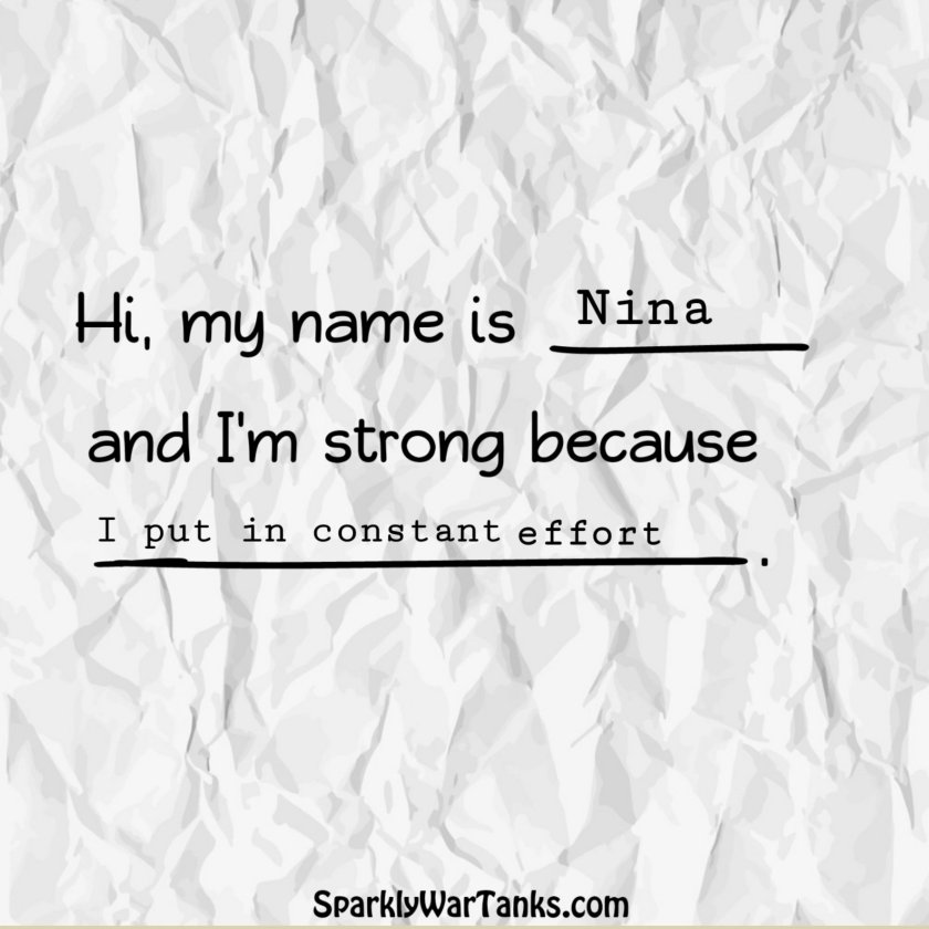 What makes you strong? What have you been working on, building up, becoming better at, good in, and achieving?