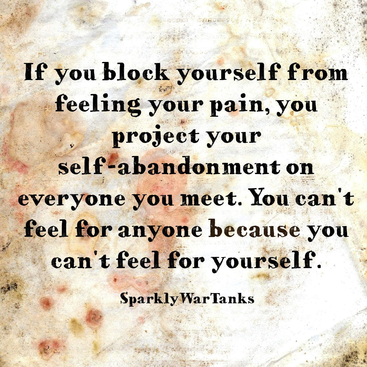 Projection occurs when we place how we treat ourselves onto the people we love or want to love. Often unconsciously our own self-abandonment is how we begin to treat those around us.