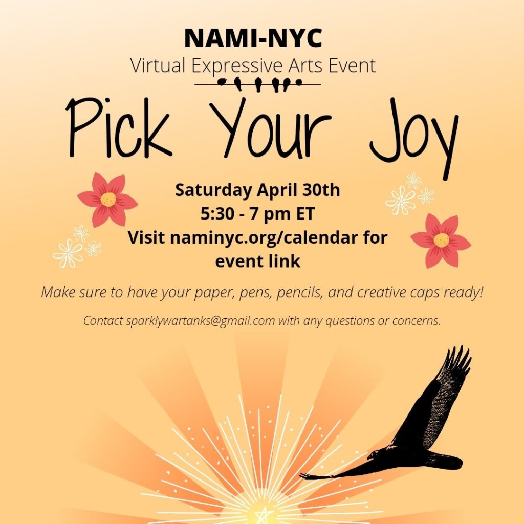 So very excited to announce the NAMI-NYC Expressive Arts workshop event I will be facilitating this weekend! This event will be via Zoom and on the NAMI-NYC website. You can find the link here. On the day of the event click the Expressive Arts Zoom link for April 29th, 2023.