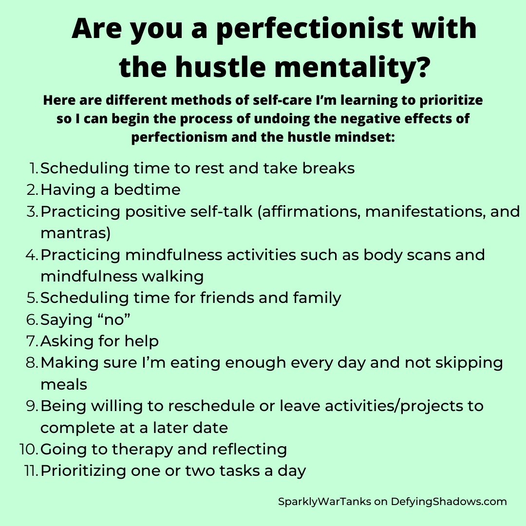 “The hustle mentality for me is driven by a desire for financial freedom and emotional wellness. The flaws in my hustle mentality, however, are rooted in “destination addiction” constantly feeling as though satisfaction is achieved in something I don’t have yet. Because I’m always working for something greater and better than my last accomplishment, I also find myself lost in perfectionism.”