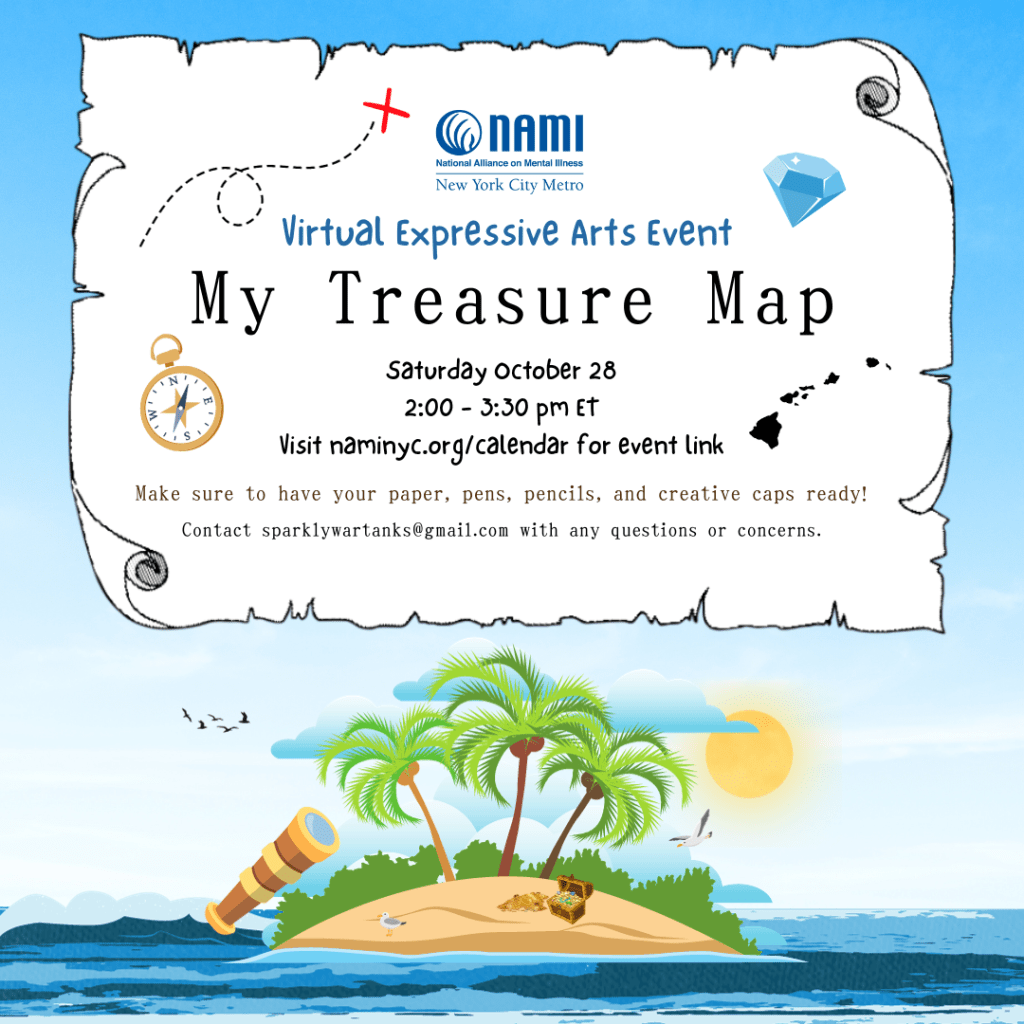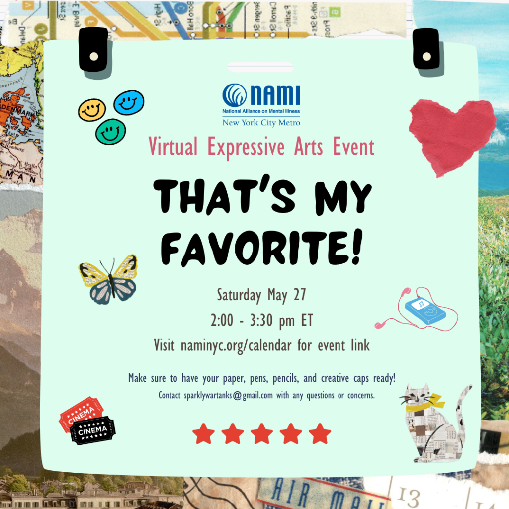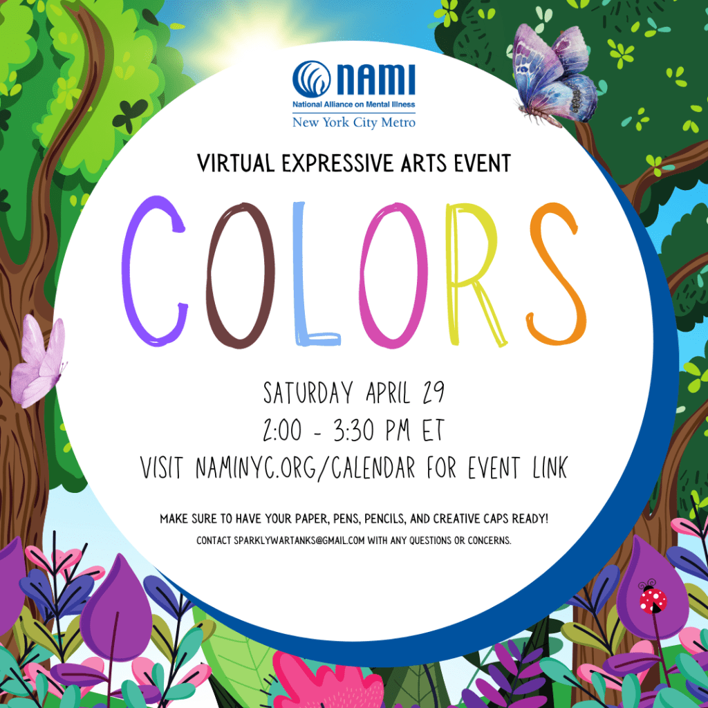 So very excited to announce the NAMI-NYC Expressive Arts workshop event I will be hosting this Saturday! This event will be via Zoom and on the NAMI-NYC website. You can find the link here. Click the Expressive Arts Zoom link for the Expressive Arts workshop on March 29, 2025.